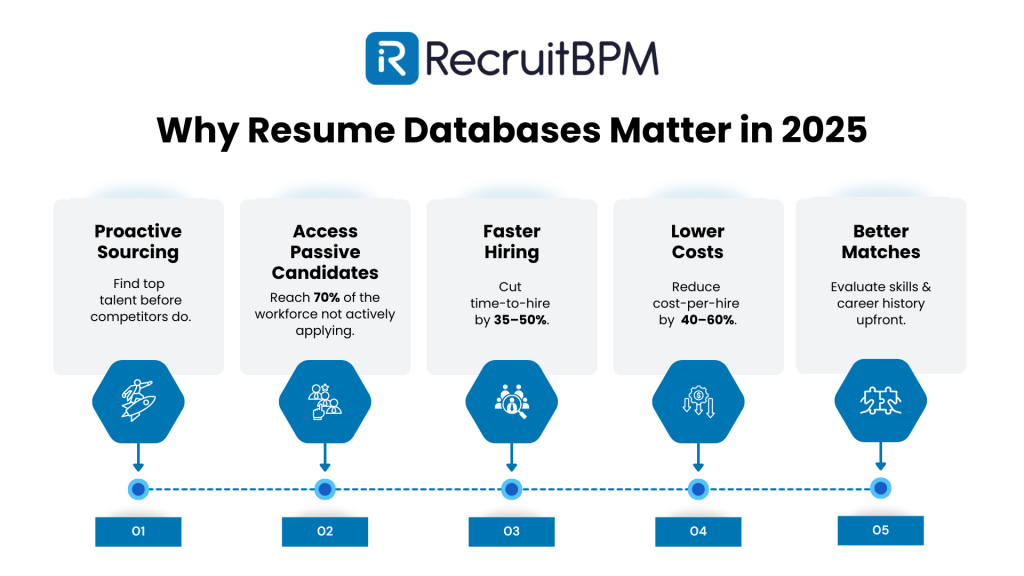 Resume databases also provide access to passive candidates—professionals who aren’t actively job searching but might be open to the right opportunity. Research shows that 70% of the global workforce consists of passive candidates, representing a massive talent pool that traditional job postings can’t reach.
